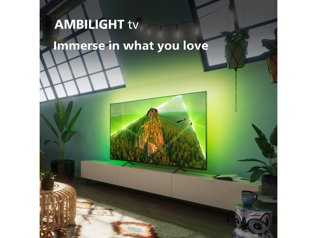 Philips 43"PUS8118 4K Smart TV; Ambilight s 3 strane; panel 60Hz; Pixel Precise Ultra HD; Dolby Vision; HLG (Hybrid Log Gamma); HDR10+; procesor dvojezgreni; izlazna snaga zvucnika 20W; satenski kromirani okvir; M 23
